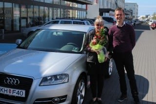 Það var Guðrún Sigríður Magnúsdóttir sem fékk nýjann Audi A3 sem var sá þúsundasti á árinu og fékk hún blómavönd að gjöf frá Bjarka Steingrímssyni, sölustjóra Audi.