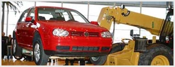 Nú hangir fagurrauður Volkswagen Golf í sex metra hæð í Vetrargarðinum í Smáralind. Þar mun hann hanga yfir helgina eða á meðan sýningin Meiri Volkswagen stendur yfir. Golfinn vegur 1250 kíló. Hann er festur í sérsmíðað dráttarbeisli sem þolir 3 tonna álag og hangir í taug gerðri úr tveimur járnvírum sem hvor um sig þolir 6 tonna þunga. Bílinn er síðan festur í þak Vetrargarðsins sem ber 4 tonna þunga.